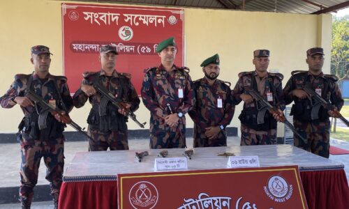 চাঁপাইনবাবগঞ্জের শিবগঞ্জ সীমান্তে তিনটি আগ্নেয়াস্ত্র ও ছয় রাউন্ড গুলি উদ্ধার করেছে বর্ডার গার্ড বাংলাদেশ (বিজিবি)। বৃহস্পতিবার রাতে উপজেলার চকপাড়া…