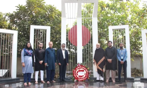 ইস্টার্ন ইউনিভার্সিটিতে মহান শহীদ দিবস ও আন্তর্জাতিক মাতৃভাষা দিবস উপলক্ষে বিশ্ববিদ্যালয় প্রাঙ্গনে শোভাযাত্রা নিয়ে ক্যাম্পাসে নির্মিত ‘শহীদ মিনার’-এ পুষ্পস্তবক অর্পন…