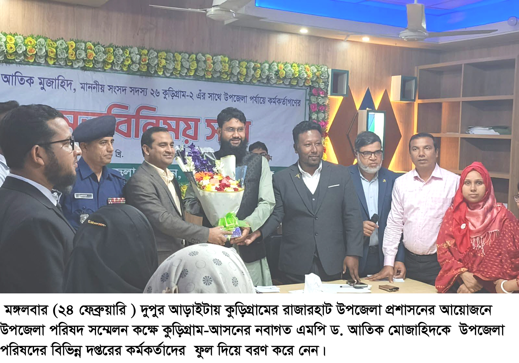 মঙ্গলবার (২৪ ফেব্রুয়ারি) দুপুর আড়াইটার দিকে কুড়িগ্রামের রাজারহাট উপজেলা প্রশাসনের আয়োজনে উপজেলা পরিষদ সম্মেলন কক্ষে উপজেলা পরিষদের বিভিন্ন দপ্তরের কর্মকর্তাদের সঙ্গে মতবিনিময় সভায় তিনি এসব কথা বলেন।
