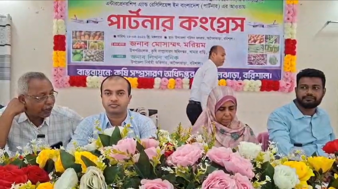 বরিশালের আগৈলঝাড়ায় কৃষিতে আধুনিক প্রযুক্তির ব্যবহার, উৎপাদন বৃদ্ধি এবং কৃষকদের আর্থিক উন্নয়নকে গুরুত্ব দিয়ে “পার্টনার কংগ্রেস” অনুষ্ঠিত হয়েছে।