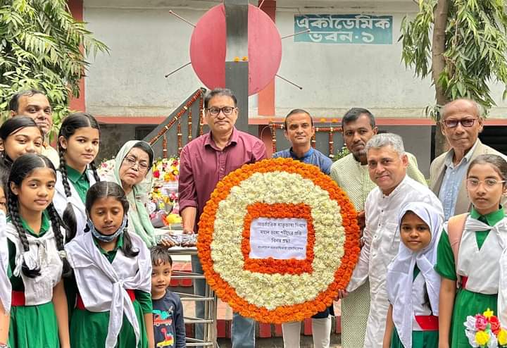 কেন্দ্রিয় শহীদ বেদিতে পুষ্পমাল্য অর্পন পুষ্পমাল্য অর্পন করা হয়। রাত বারোটা এক মিনিটে পুষ্পমাল্য অর্পন শুরু হয়।
