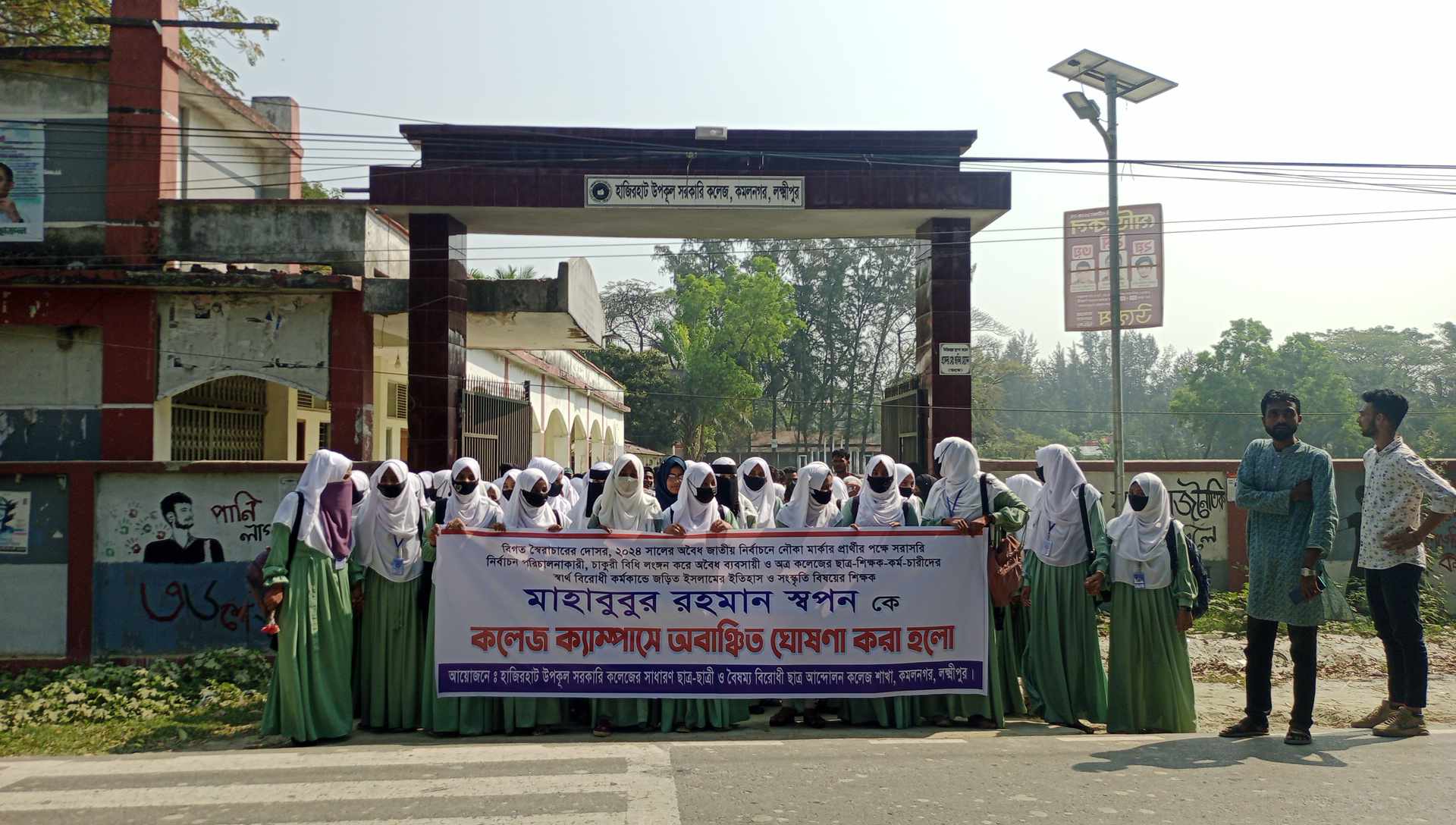 মানববন্ধনে শিক্ষার্থীরা বলেন মাহবুবুর রহমান স্বপন ফ্যাসিষ্ট সরকারের দোসর এবং রাতের ভোটের কারিগর। তিনি বিগত দিনে ফ্যাসিষ্ট সরকারে পক্ষে কাজ করেছেন। গত ১৫ বছরে তিনি সব সময় ক্লাস ফাঁকি দিতেন। তার স্বার্থ বিরোধী কর্মকান্ডে কলেজের শিক্ষার্থী ও শিক্ষক কর্মচারীরা বিপদে রয়েছে। এবং তার খামখেয়ালী আচারণের কারণে শিক্ষকদের বেতন ভাতাদিও বন্ধ রয়েছে। আমরা শিক্ষার্থীরা তার পদত্যাগ ও তাকে অবাঞ্চিত ঘোষণা করছি।