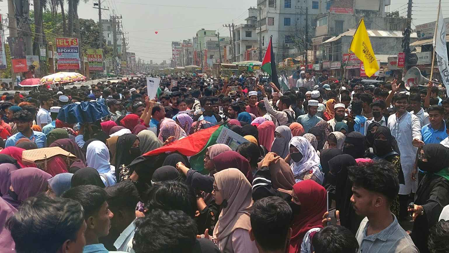 পরে সড়কে তারা টায়ার জ্বালিয়ে আগুন দিয়ে সড়ক অপরাধ করে এবং বিভিন্ন স্লোগানের মাধ্যমে বিক্ষোভ মিছিল করে। ইসরাইলের হামলার প্রতিবাদ জানায়।