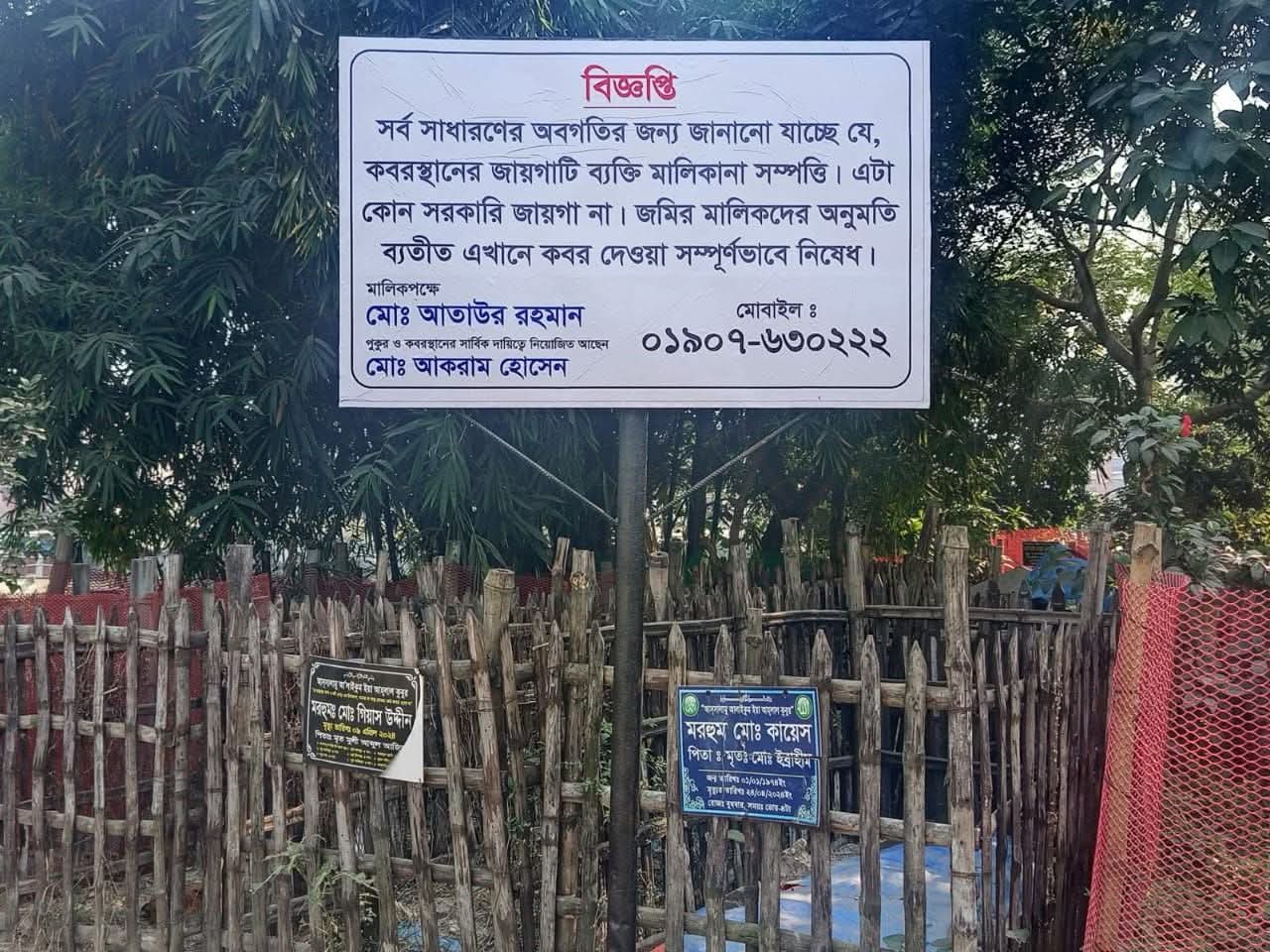 জানা গেছে, গত ৫ আগস্টের পর আতাউর রহমান নামে এক ব্যক্তি নিজেকে জমির মালিক দাবি করে কবরস্থানের প্রবেশপথে একটি সাইনবোর্ড স্থাপন করেন। পরে কবরস্থানের দেখভালের দায়িত্ব দেওয়া হয় আকরাম হোসেন নামের আরেক ব্যক্তিকে। সম্প্রতি এক মৃত ব্যক্তির দাফনের সময় বাধা সৃষ্টি করা হলে, কবর খোঁড়াখুঁড়ি সম্পন্ন হওয়ার পরও পরিবারের সদস্যরা লাশ দাফন করতে না পেরে অন্যত্র নিয়ে যেতে বাধ্য হন।