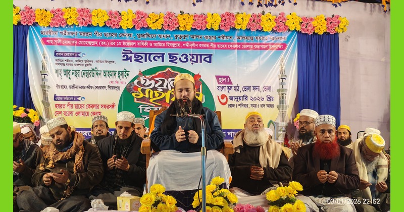 ৩ জানুয়ারি শনিবার রাতে ভোলা জেলা শহরের বাংলা স্কুল মাঠ প্রঙ্গনে বাংলাদেশ জমইয়াতে হিযবুল্লাহ ভোলা জেলা শাখা কর্তৃক আয়োজিত ঈছালে ছাওয়াব মাহফিলে প্রধান অতিথির আলোচনায় হযরত পীর ছাহেব কেবলা একথা বলেন।
