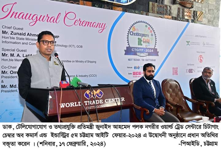 আজ ১৭ ফেব্রুয়ারি নগরীর ওয়ার্ল্ড ট্রেড সেন্টারে চট্টগ্রাম চেম্বার্স এন্ড কমার্স আয়োজিত ৫ম আন্তর্জাতিক প্রযুক্তি মেলা উদ্বোধনী অনুষ্ঠানে প্রধান অতিথি হিসেবে উপস্থিত হয়ে তিনি এসব কথা বলেন। বক্তব্য শেষে প্রতিমন্ত্রী বিভিন্ন স্টল পরিদর্শণ করেন এবং বেলুন উড়িয়ে মেলার শুভ উদ্বোধন ঘোষণা করেন।