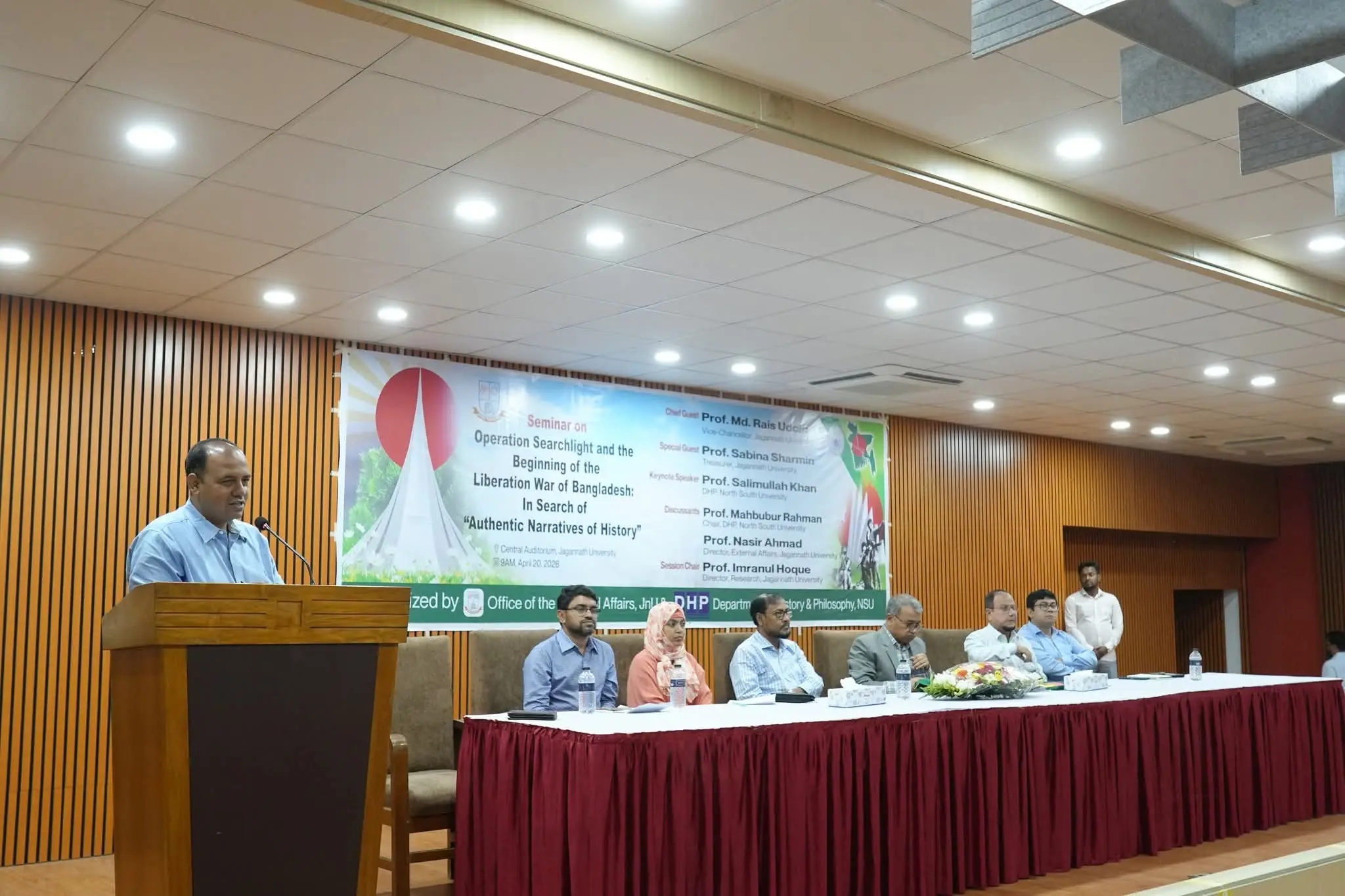 জগন্নাথ বিশ্ববিদ্যালয়ে (জবি) ‘অপারেশন সার্চলাইট ও বাংলাদেশের মুক্তিযুদ্ধের সূচনা: ইতিহাসের প্রামাণ্য আখ্যানের সন্ধানে’ শীর্ষক একটি সেমিনার অনুষ্ঠিত হয়েছে। সোমবার (২০ এপ্রিল ২০২৬) সকাল ৯টা ৩০ মিনিটে বিশ্ববিদ্যালয়ের কেন্দ্রীয় মিলনায়তনে এক্সটার্নাল অ্যাফেয়ার্স এবং নর্থ সাউথ বিশ্ববিদ্যালয়ের ইতিহাস ও দর্শন বিভাগের যৌথ আয়োজনে এ সেমিনার অনুষ্ঠিত হয়।