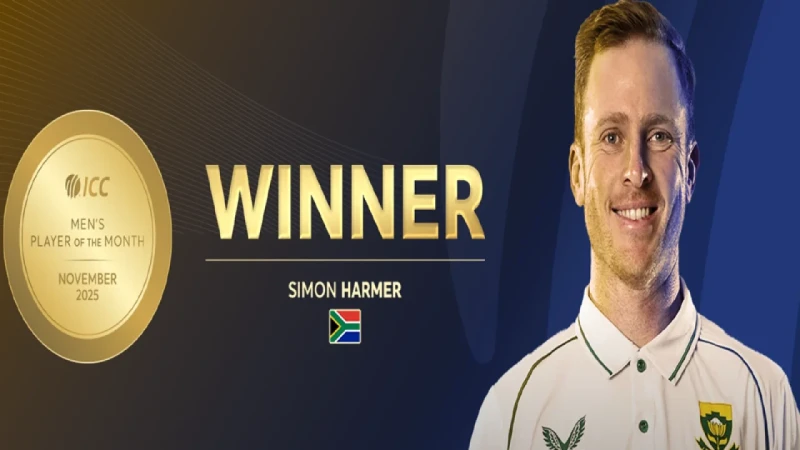দক্ষিণ আফ্রিকার স্পিনার সাইমন হারমারকে নভেম্বরে মাসসেরা ক্রিকেটার হিসেবে ঘোষণা করা হয়েছে। ভারতের বিপক্ষে আইসিসি বিশ্ব টেস্ট চ্যাম্পিয়নশিপে অসাধারণ পারফরম্যান্সের কারণে এই সম্মান অর্জন করেছেন হারমার।