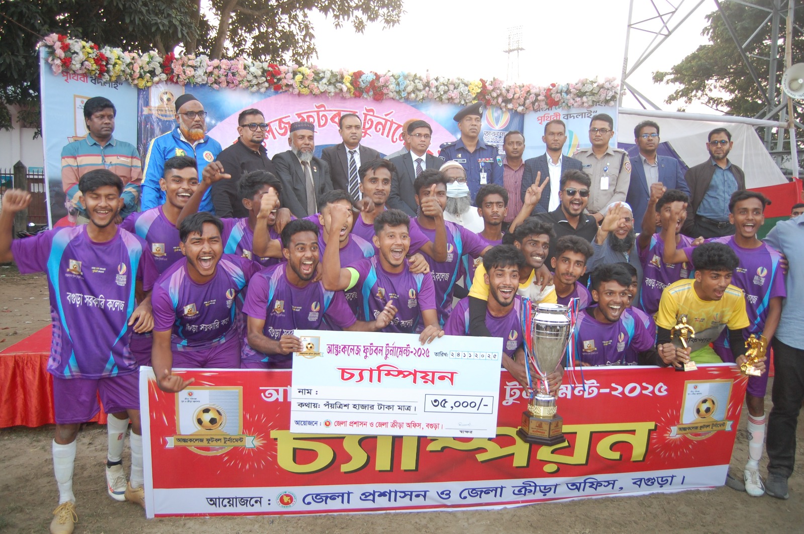 তারুণ্যের উৎসব ২০২৫ উপলক্ষে আয়োজিত আন্তঃ কলেজ ফুটবল টুর্নামেন্টের ফাইনালে বগুড়া সরকারি কলেজ টাইব্রেকারে ৪-২ গোলে সরকারি আজিজুল হক কলেজকে পরাজিত করে চ্যাম্পিয়ন হওয়ার গৌরব অর্জন করেছে।