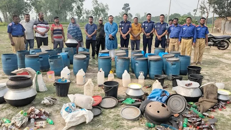 নওগাঁর ধামইরহাটে প্রশাসন ও পুলিশের যৌথ অভিযানে ধানক্ষেতে থেকে প্রায় সাড়ে ৬ হাজার লিটার চোলাই মদ জব্দ করা হয়েছে। বৃহস্পতিবার উপজেলার জাহানপুর ইউনিয়নের মঙ্গলবাড়ী এলাকার মুকুন্দপুর গ্রামের কামারপাড়ার এক ধানক্ষেত থেকে এ বিপুল পরিমাণ মদ জব্দ করা হয়।