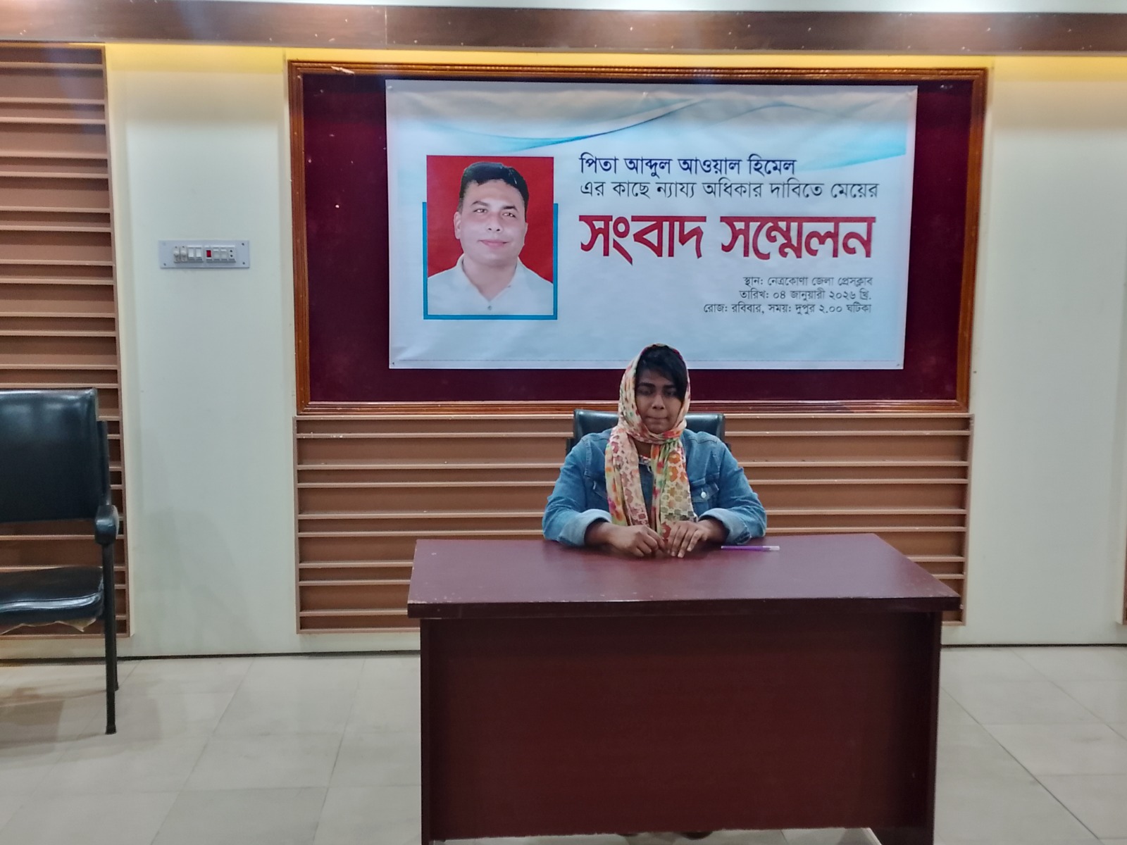 পিতৃপরিচয় ও ন্যায্য অধিকার আদায়ের দাবিতে নেত্রকোনা জেলা প্রেস ক্লাবে সংবাদ সম্মেলন করেছেন ভুক্তভোগী সন্তান আলফি শারিন আরিয়ানা।