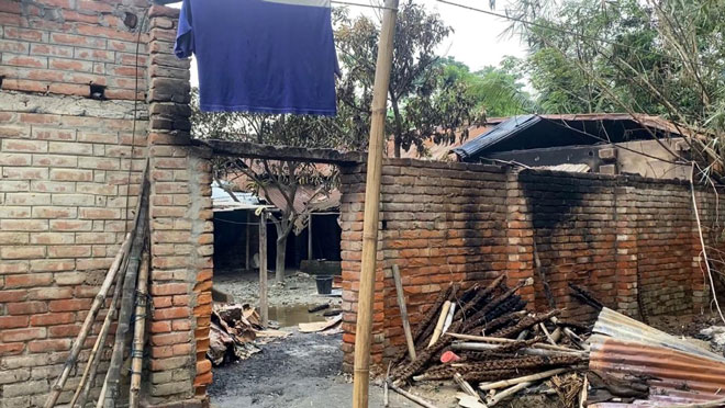 তিনি বলেন, “তখন আমি বড় ছেলেকে নিয়ে পাশের একটি চাতালে লুকিয়ে পড়ি। হামলাকারীরা বাড়ির জিনিসপত্র ভাঙচুর করে রান্নাঘর, খড়ির ঘর ও একটি ছোট ঘরে আগুন ধরিয়ে দেয়। আগুনে দুটি ছাগল ও একটি গরুও পুড়ে যায়। পরে পুলিশ, সেনাবাহিনী ও ফায়ার সার্ভিসের সদস্যরা গিয়ে আগুন নিয়ন্ত্রণে আনেন।’’