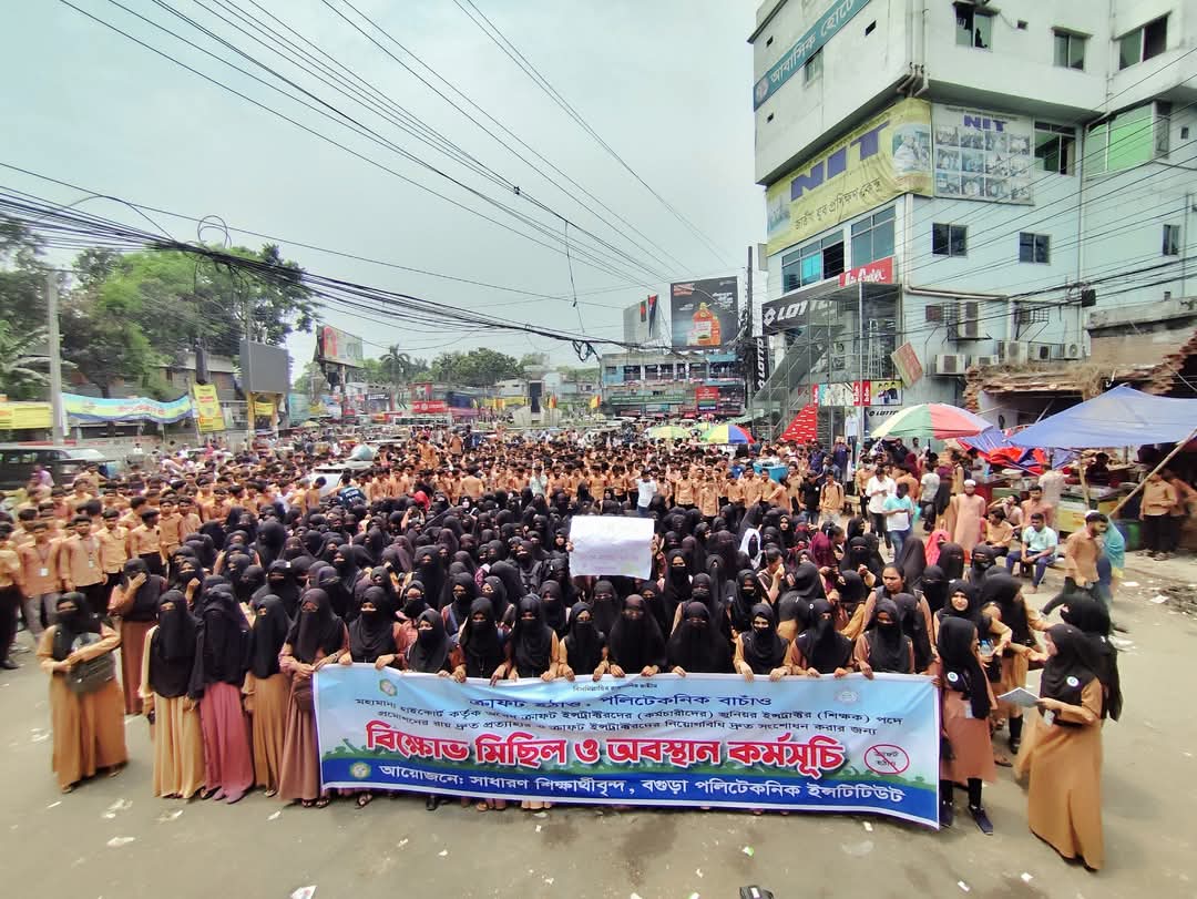 জুনিয়র ইন্সট্রাক্টর পদে ক্রাফট ইন্সট্রাক্টরদের অবৈধ পদোন্নতির রায় হাইকোর্ট কর্তৃর্ক বাতিলের দাবি সহ ৬ দফা দাবিতে বিক্ষোভ মিছিল করে বগুড়া পলিটেকনিক ইনস্টিটিউট এর শিক্ষার্থীরা।