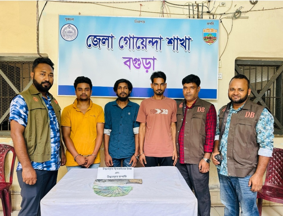 বগুড়ায় ধারালো চাপাতি ও নগদ ১৪ হাজার টাকাসহ তিন ছিনতাইকারীকে গ্রেফতার করেছে পুলিশ। জেলা গোয়েন্দা শাখার অভিযানে এসব ছিনতাকারী গ্রেফতার হয়।