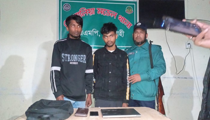 রাজশাহী মহানগরীতে দুই ছিনতাইকারীকে গ্রেফতার করেছে পুলিশ। এসময় আসামিদের কাছ থেকে ছিনতাই হওয়া ল্যাপটপ, ২টি মোবাইল ফোন, ১টি ভ্যানেটি ব্যাগ, নগদ টাকা ও ছিনতাইয়ে ব্যবহৃত ১টি চাকু উদ্ধার হয়।