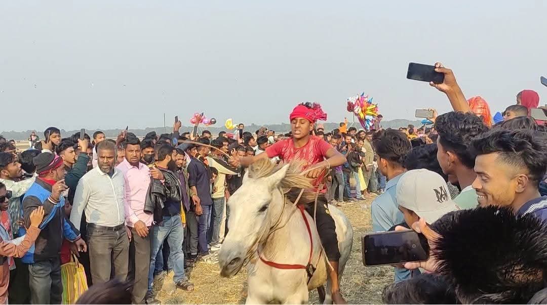 মেলার প্রথম দিন ঘোড়দৌড় প্রতিযোগিতা শেষে প্রথম, দ্বিতীয় ও তৃতীয় স্থান অধিকারীদের পুরস্কৃত করা হয়।