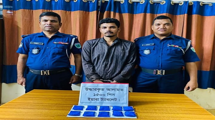 হবিগঞ্জের মাধবপুরে দেড় হাজার পিস ইয়াবা ট্যাবলেটসহ নাজিম উদ্দিন ওরফে জামিল নামের এক যুবককে গ্রেপ্তার করেছে পুলিশ।”