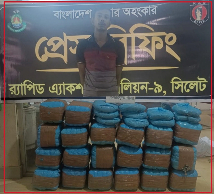 সংবাদ বিজ্ঞপ্তিতে র্যাপিড এ্যাকশন ব্যাটালিয়ন র্যাব-৯ এর অতিরিক্ত পুলিশ সুপার, মিডিয়া অফিসার কে, এম, শহিদুল ইসলাম সোহাগ জানায়, গোপন সংবাদের ভিত্তিতে র্যাব-৯, সিপিসি-৩, শায়েস্তাগঞ্জ ক্যাম্পের একটি আভিযানিক দল শুক্রবার (০৪ এপ্রিল) রাত ৩ টার দিকে হবিগঞ্জ জেলার মাধবপুর উপজেলার জগদীশপুর ইউনিয়নে’র বেজুড়া এলাকায় মাদক বিরোধী অভিযান পরিচালনা করে ভারতীয় ১১০ কেজি গাঁজা উদ্ধারসহ মোহাম্মদ আলী (৩০) নামে এক মাদক কারবারি কে গ্রেফতার করেছে র্যাব-৯।