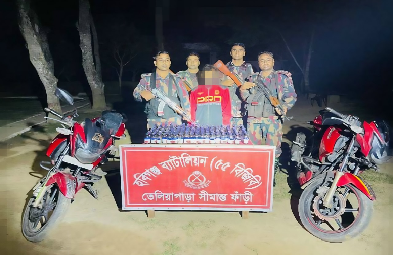 বিজিবি জানায়, উরিষ্যা লাইন এলাকায় সন্দেহজনক দুইটি মোটরসাইকেল থামানোর সংকেত দিলে তারা পালানোর চেষ্টা করে। বিজিবি সদস্যরা ধাওয়া করে একজনকে আটক করে, তাঁর নাম জুয়েল মিয়া (৩৫)। তিনি মাধবপুর উপজেলার তেলিয়াপাড়া ইউনিয়নের এক্তিয়ারপুর গ্রামের ছুবুর মিয়ার ছেলে।