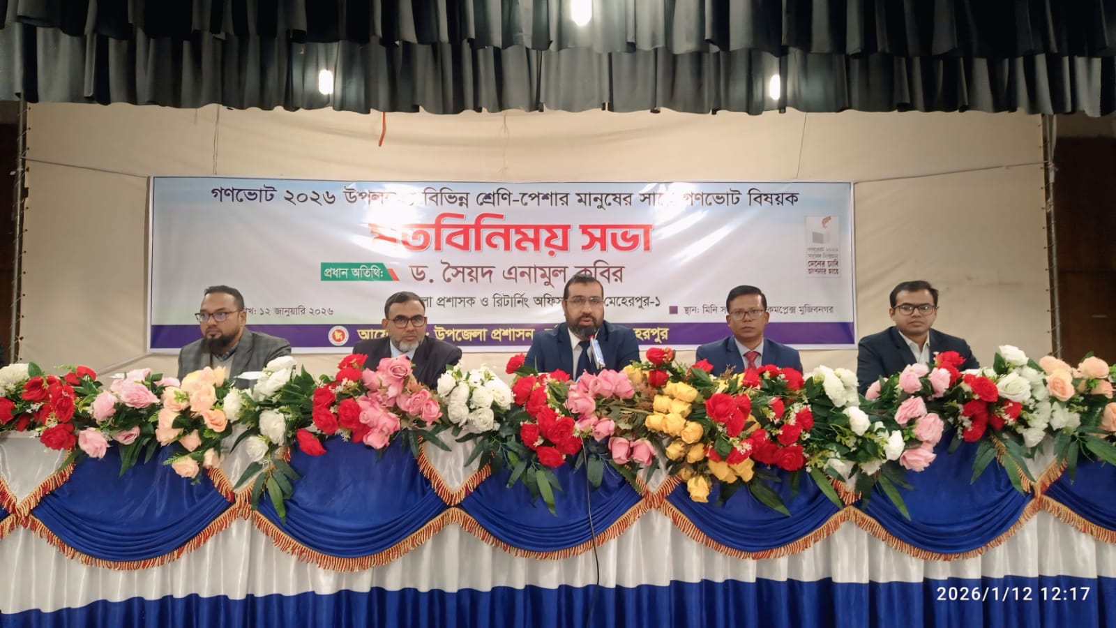 মুজিবনগর উপজেলা নির্বাহী অফিসার সাইফুল হুদা সভার সভাপতিত্ব করেন। অন্যদের মধ্যে উপস্থিত ছিলেন জেলা নির্বাচন অফিসার এনামুল হক, সহকারী কমিশনার ও এক্সিকিউটিভ ম্যাজিস্ট্রেট সাকির আহম্মেদ।