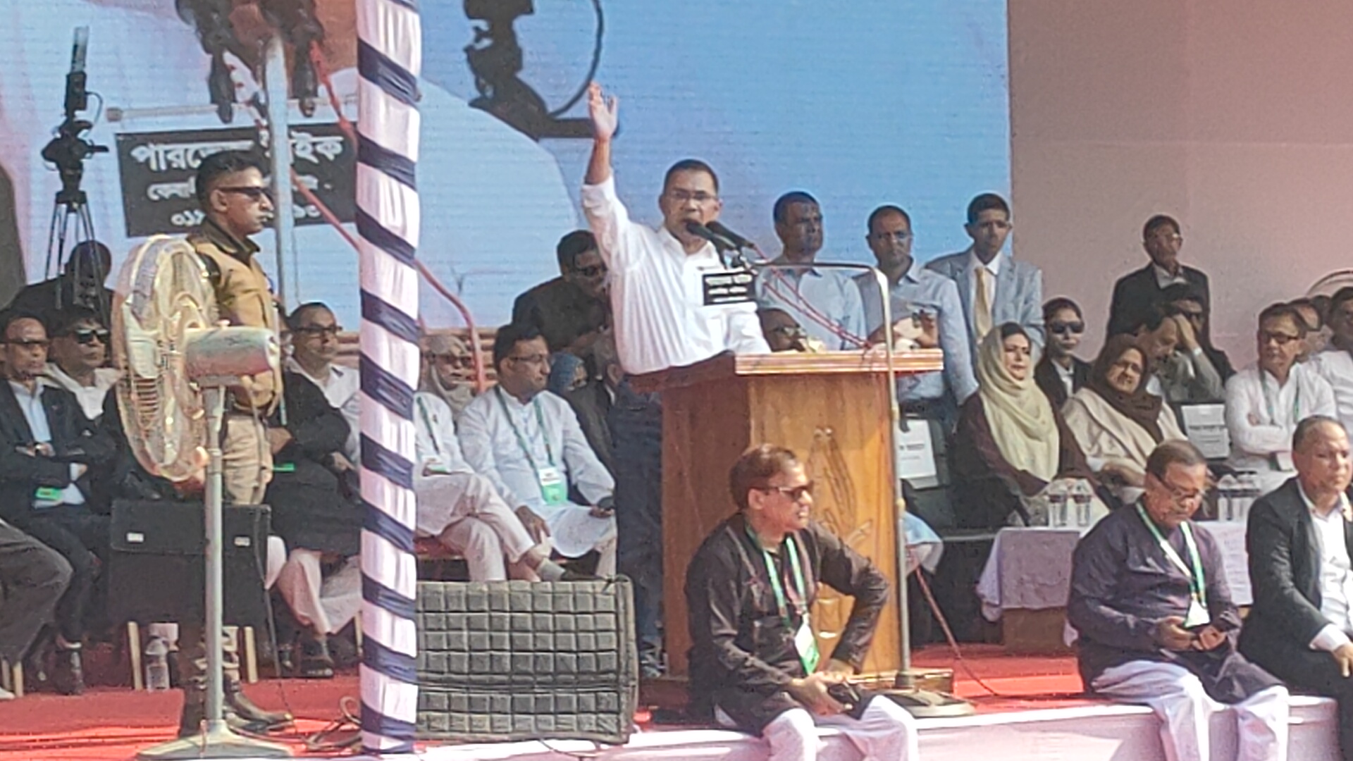 এ সময় তিনি জনসভা থেকে হজ্ব করা একজনকে মঞ্চে নিয়ে বলেন, তিনি কাবায় তাওয়াফ করে এসেছেন। এরপর প্রশ্ন করেন, “সবকিছুর মালিক কে?” উত্তরে ওই ব্যক্তি বলেন, “আল্লাহ।” তখন তারেক রহমান বলেন, “বেহেশত ও দোজখের মালিক আল্লাহ। যেটার মালিক আল্লাহ, সেটা অন্য কেউ দেওয়ার ক্ষমতা রাখে না। যারা বিভিন্ন টিকিট দিচ্ছে—যেটার মালিক মানুষ না—কিন্তু সেটার কথা বলে শিরক করছে। নির্বাচনের আগেই একটি দল মানুষকে ঠকাচ্ছে, এবার নির্বাচনের পর কেমন ঠকাবে বুঝে নেন।”