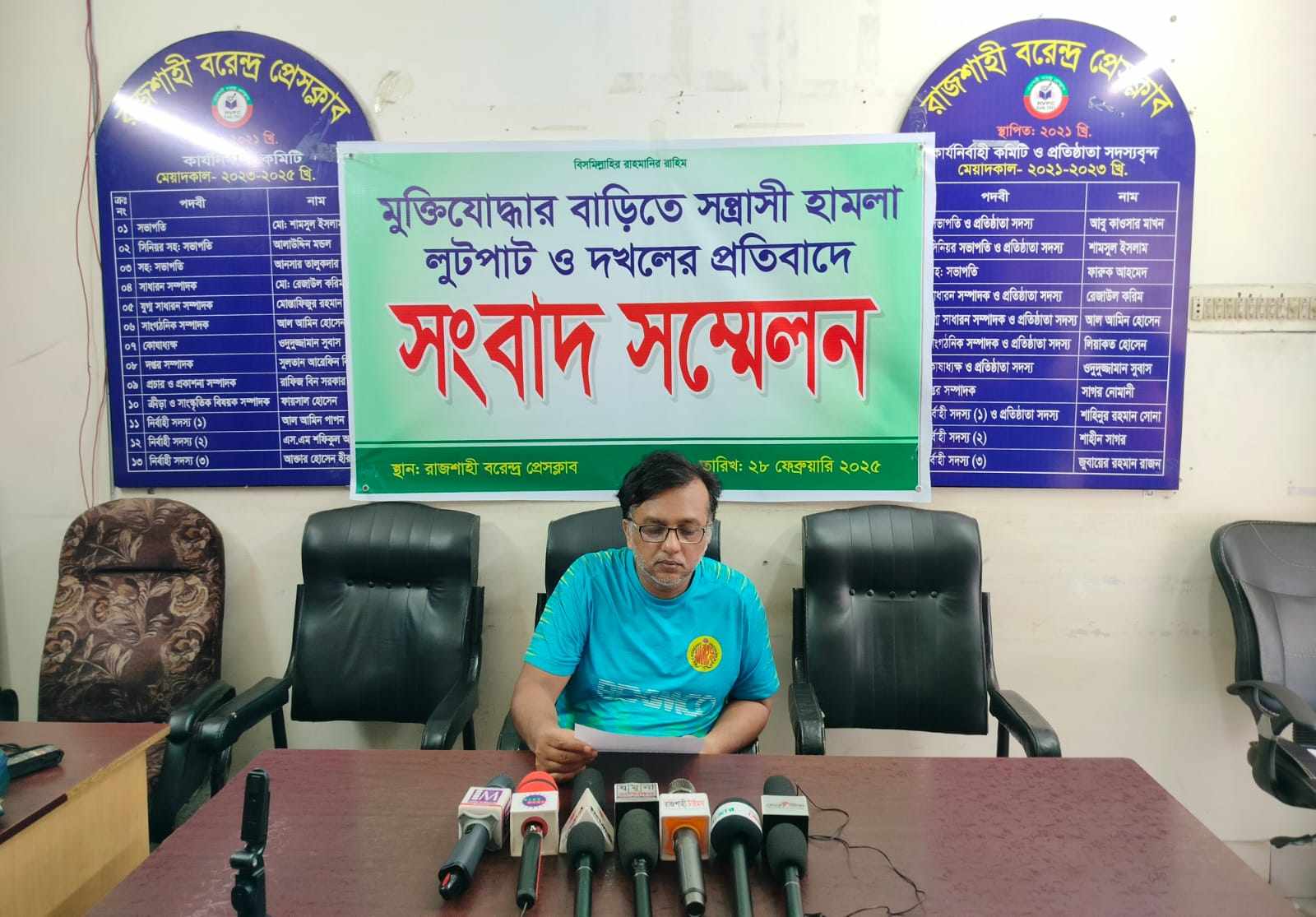 বুধবার (২৮ মে) বেলা সাড়ে ১১ টায় রাজশাহী বরেন্দ্র প্রেসক্লাব’র সম্মেলন কক্ষে রাজশাহী নগরীর রাজপাড়া থানার চন্ডীপুর এলাকার বীর মুক্তিযোদ্ধা মরহুম আব্দুস সামাদ’র ছেলে ভূক্তভোগী শাহাজাদা সামাদ সুমন (৪৪) এ সংবাদ সম্মেলনের আয়োজন করেন।
