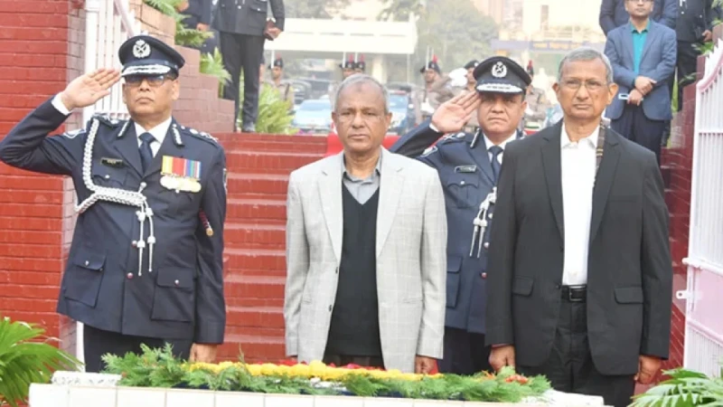 মহান বিজয় দিবস উপলক্ষে রাজারবাগে পুলিশ স্মৃতিস্তম্ভে পুষ্পস্তবক অর্পণের মাধ্যমে শহীদ পুলিশ সদস্যদের প্রতি শ্রদ্ধা জানিয়েছেন স্বরাষ্ট্র উপদেষ্টা লেফটেন্যান্ট জেনারেল মো. জাহাঙ্গীর আলম চৌধুরী (অব.) ও পুলিশের মহাপরিদর্শক (আইজিপি) বাহারুল আলম।