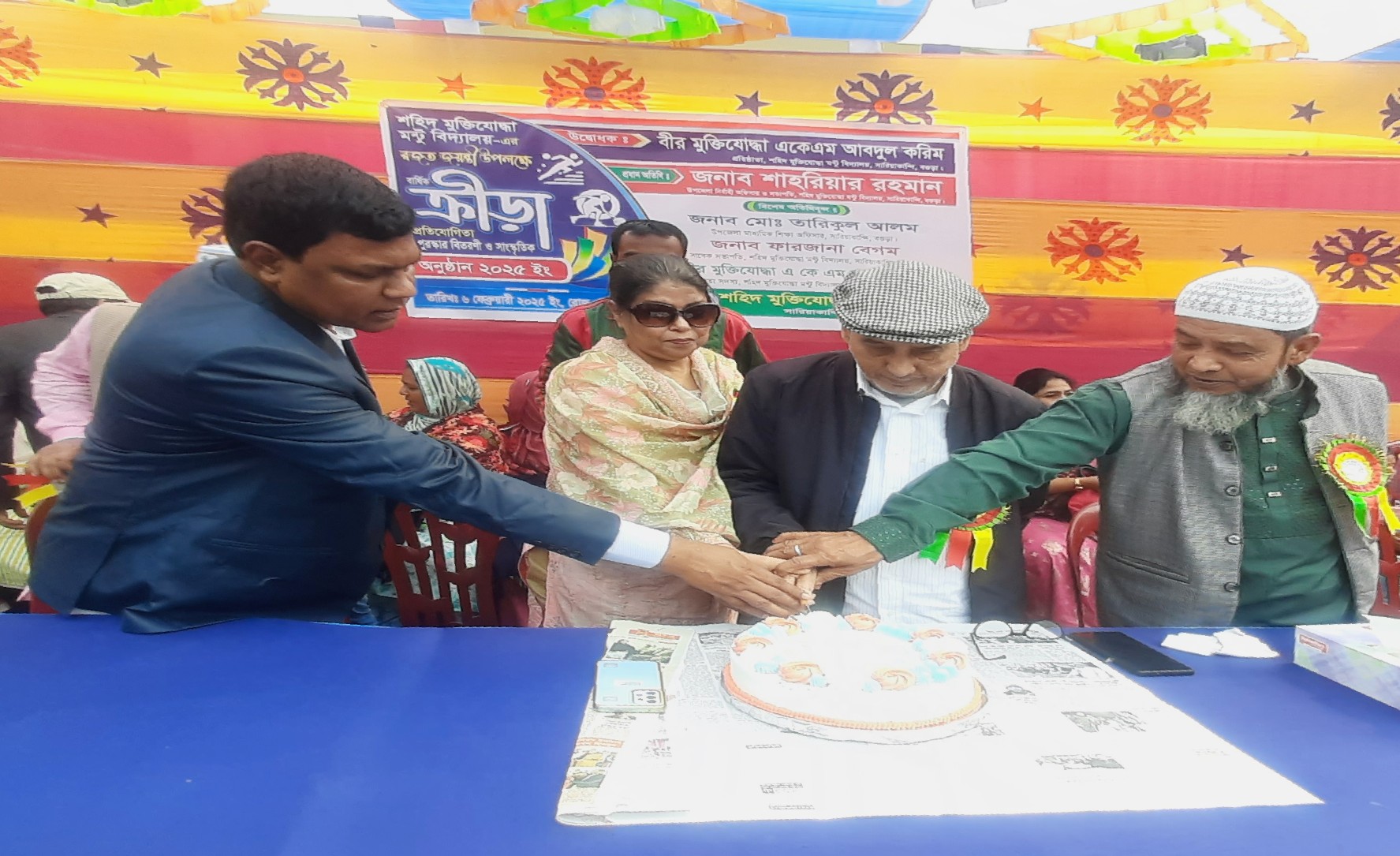 বৃহস্পতিবার সকালে বিদ্যালয়ের প্রধান শিক্ষক মুকুল চন্দ্র সূত্রধরের সভাপতিত্বে কেক কেটে অনুষ্ঠানের উদ্বোধন করেন বিদ্যালয়ের প্রতিষ্ঠাতা বীর মুক্তিযোদ্ধা একেএম আবদুল করিম।