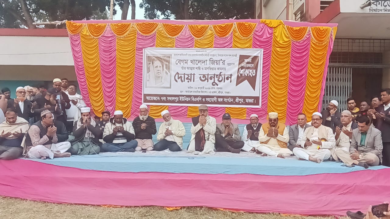 মাগুরার শ্রীপুর উপজেলায় সব্দালপুর ইউনিয়ন বিএনপি ও এর অঙ্গসংগঠনের উদ্যোগে বিএনপির চেয়ারপারসন ও তিনবারের সাবেক সফল প্রধানমন্ত্রী বেগম খালেদা জিয়ার আত্মার মাগফিরাত কামনায় দোয়া মাহফিল অনুষ্ঠিত হয়েছে।