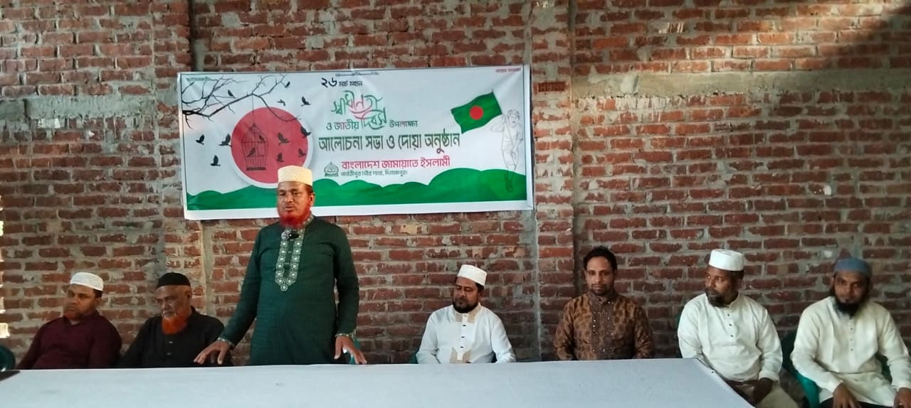 দিনাজপুরের পার্বতীপুরে স্বাধীনতা ও জাতীয় দিবস উপলক্ষে আলোচনা সভা ও দোয়া অনুষ্ঠানের আয়োজন করেছে বাংলাদেশ জামায়াতে ইসলামী পার্বতীপুর পৌর শাখা।