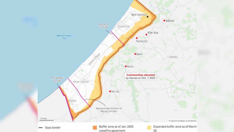 প্রতিরক্ষামন্ত্রী ইসরায়েল কাটজ বুধবার বলেছেন, সামরিক বাহিনী গাজার ৩০ শতাংশ বিশাল এলাকাকে বাফার জোনে রূপান্তরিত করেছে। সেখান থেকে বাস্তুচ্যুত করা হয়েছে কয়েক লাখ ফিলিস্তিনিকে। এ ছাড়াও ইসরাইলি সেনাবাহিনী একটি প্রশস্ত নিরাপত্তা বলয় তৈরি করেছে। মিসরের সঙ্গে যেন আন্তঃসীমান্ত যোগাযোগ বন্ধ রাখা হয়, সেই ব্যবস্থাও করা হচ্ছে। গাজাকে প্রশস্তভাবে ভাগ করার জন্য ফেলাডেলফিক, মোরগ ও নেটজারিমে তিনটি সামরিক করিডরও স্থাপন করেছে সেনারা। ফাউন্ডেশন ফর স্ট্র্যাটেজিক রিসার্চের লেকচারার অ্যাগনেস লেভালোইস বলেছেন, গাজা উপত্যকায় তেল আবিবের কৌশল হলো অঞ্চলটিকে বসবাসের অযোগ্য করে তোলা।